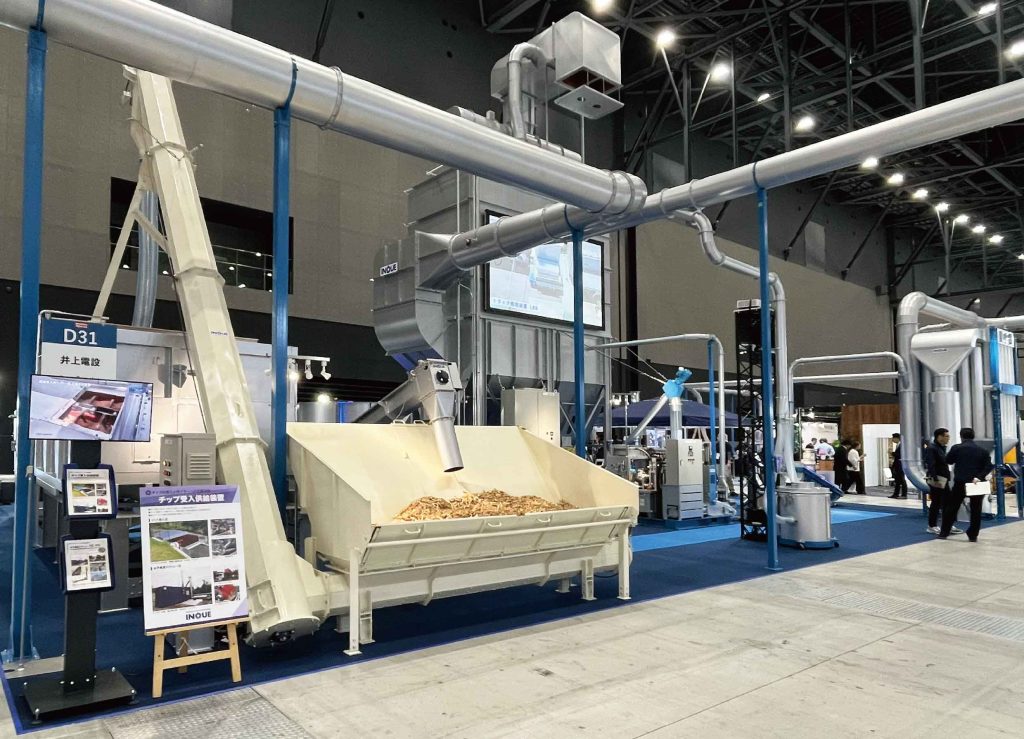 今回の展示では、集塵装置、安全装置をはじめ、木質ペレットプラントやブリケッタ、破砕機、